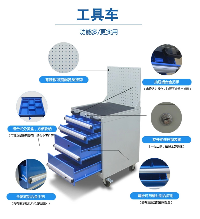 工具車適用于工具、刀具、零部件在生產(chǎn)現(xiàn)場中的定置管理,使您的物品存取工作真正做到準(zhǔn)時、準(zhǔn)確、高效、低耗。
